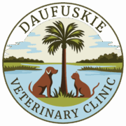 Daufuskie Veterinary Clinic logo with dog and cat.